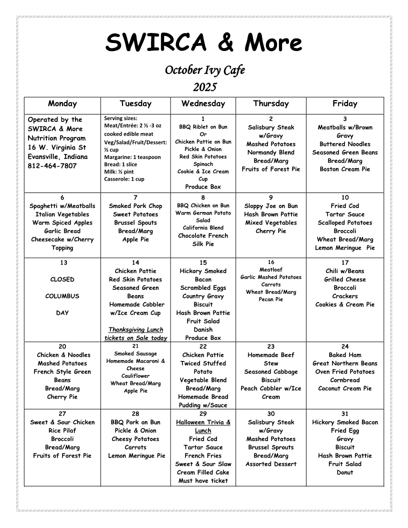Ivy Café Menu