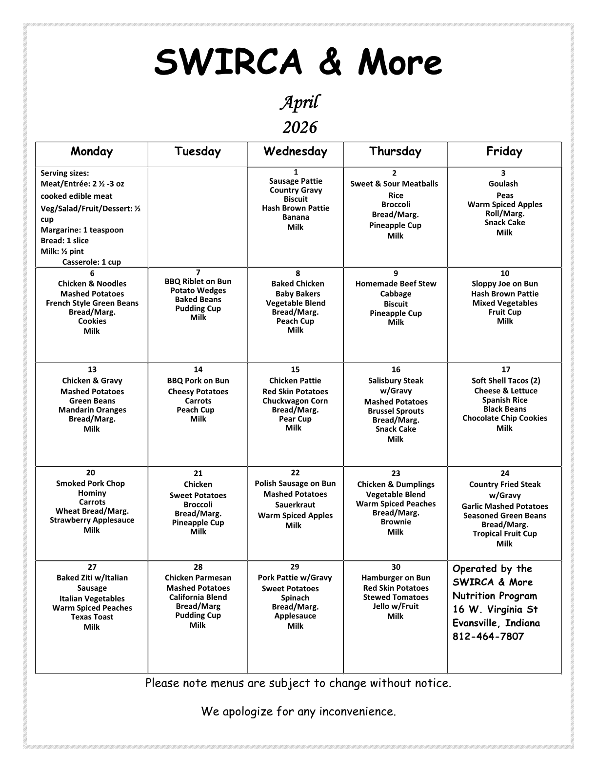 Meal Sites Menu