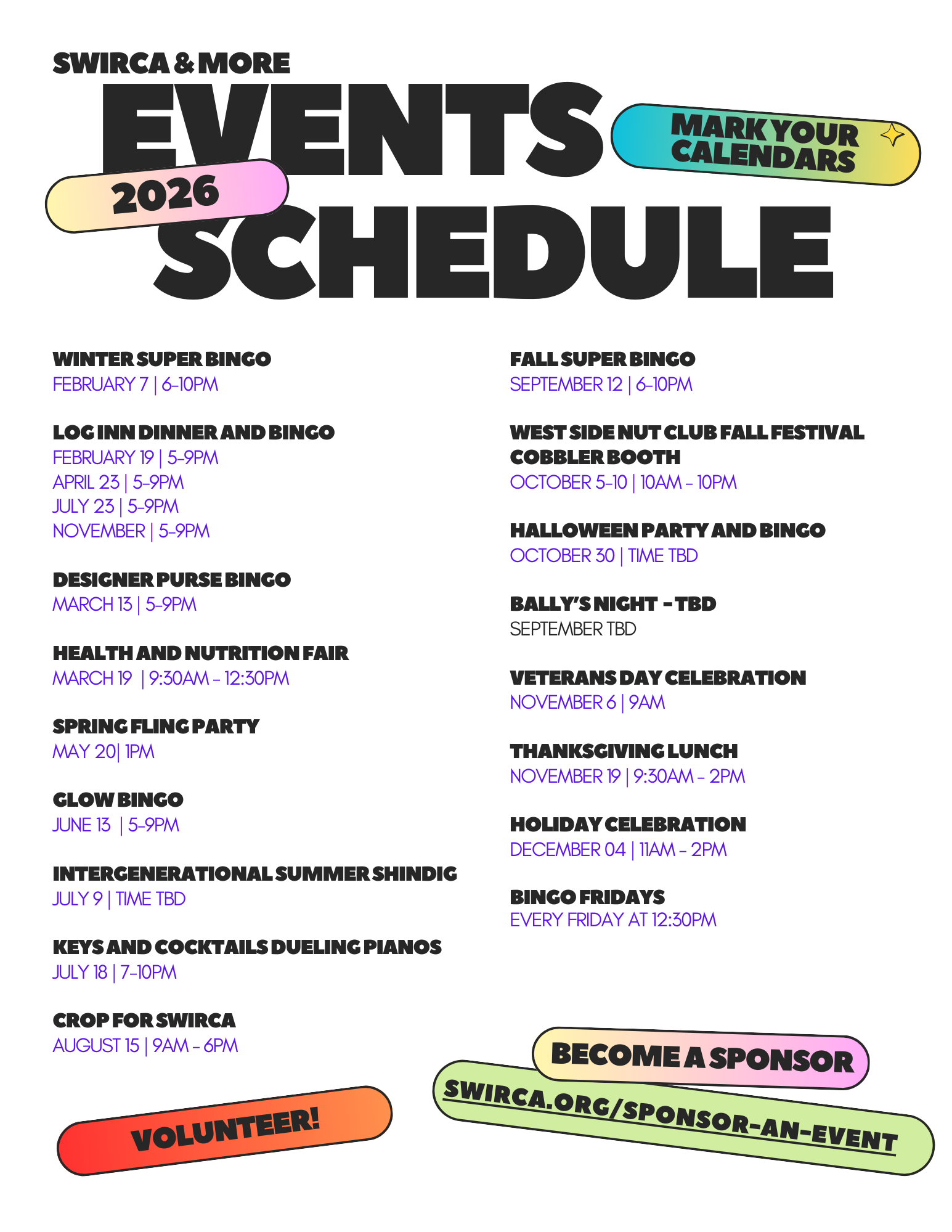 SWIRCA & More holds many special events throughout the year for our senior members and the community at-large. All events, both large and small, are geared toward engaging community support, educating the public about our many programs and services, and creating an occasion that our guests will enjoy.