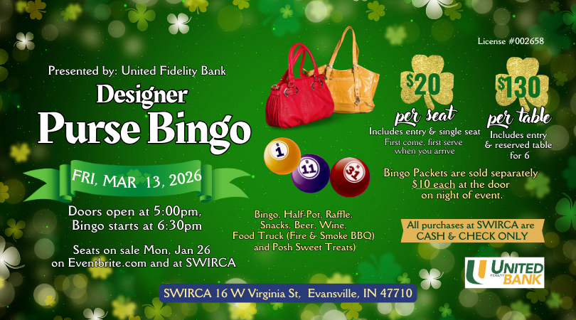 We'd love to have you spend time with us, whether as a sponsor, vendor, patron, or volunteer. For more information, watch out for detailed flyers on this page, Facebook, and Instagram throughout the year. You may also contact us at 812-464-7800 or stop by Monday through Friday from 8am-4pm.